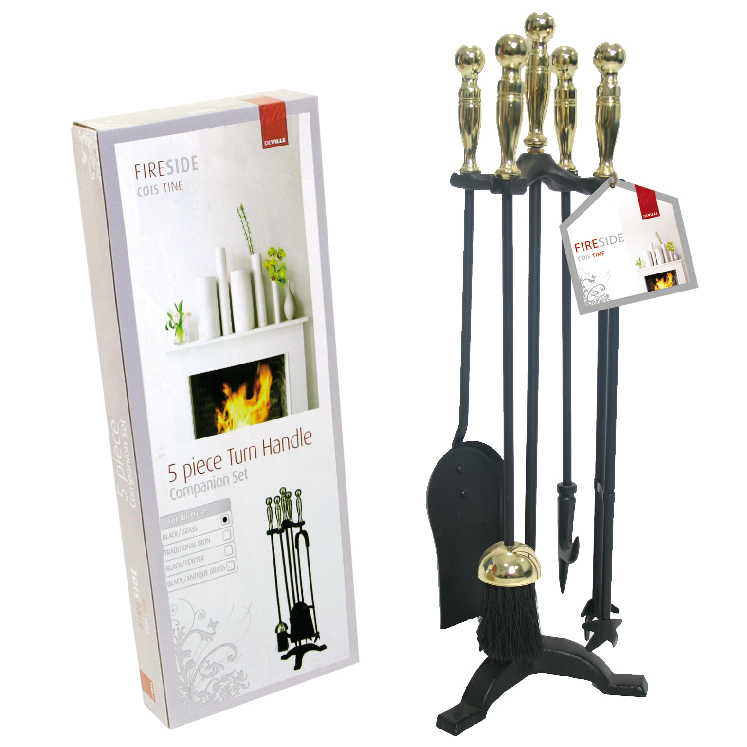 Deville Turn Handle Companion Set Black/Brass 26High quantity
