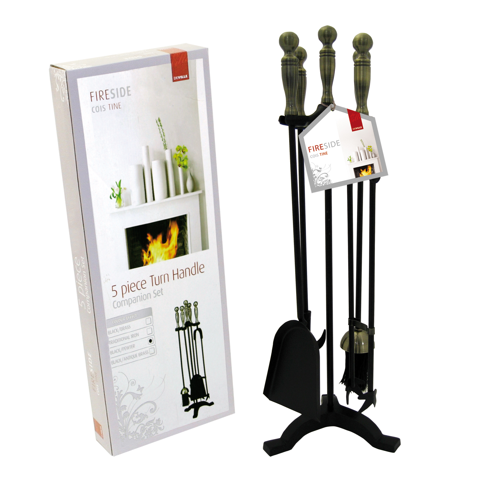 Deville Turn Handle Companion Set Black/Pewter 26High quantity